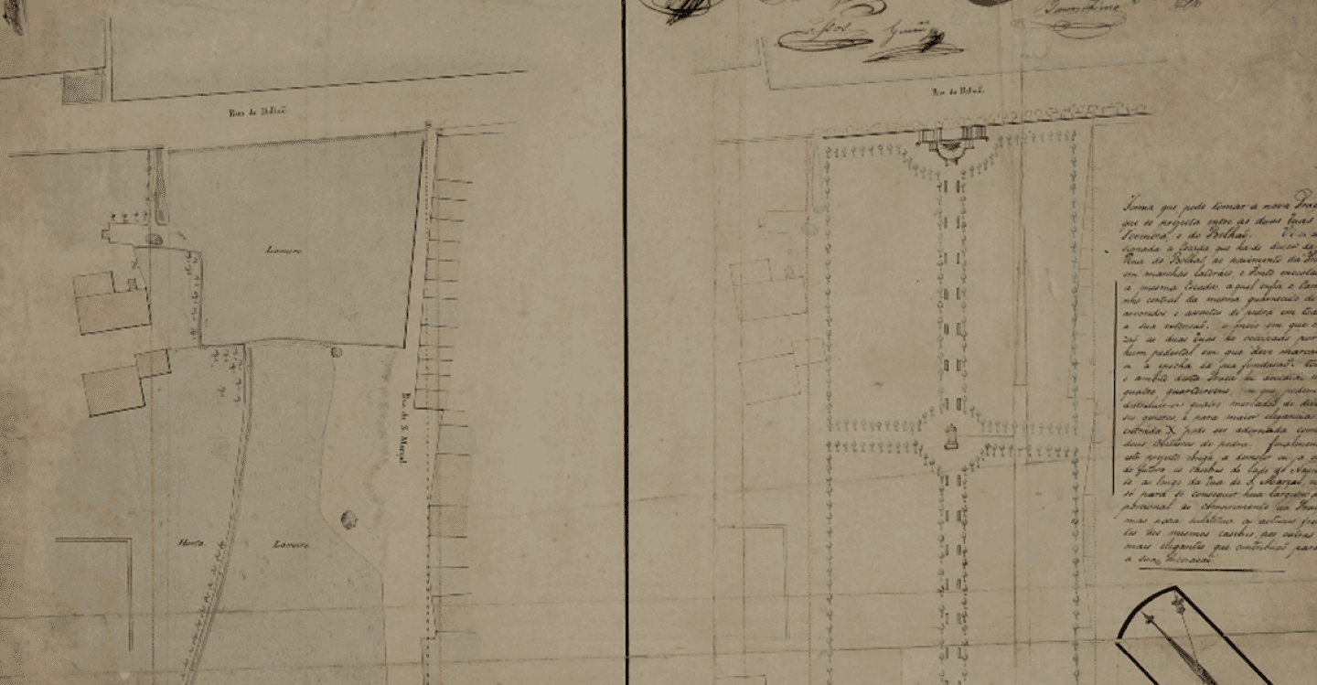 O primeiro projeto conhecido para o mercado data de 1837 e é da autoria do arquiteto Joaquim da Costa Lima Júnior, que desenha uma praça retangular, dividida internamente em quatro quarteirões delimitados por árvores com uma escadaria a Norte, que liga à Rua de Fernandes Tomás.